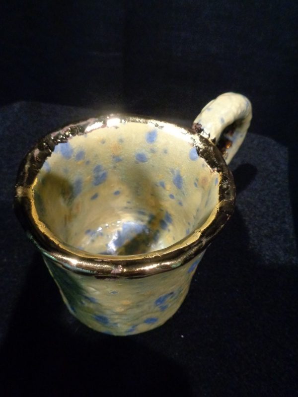 Hand build, clay , crystal glaze, gold luster, one of a kind